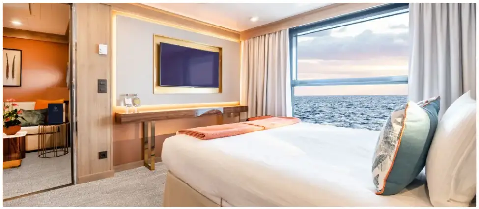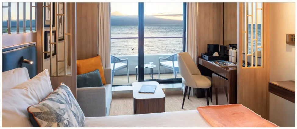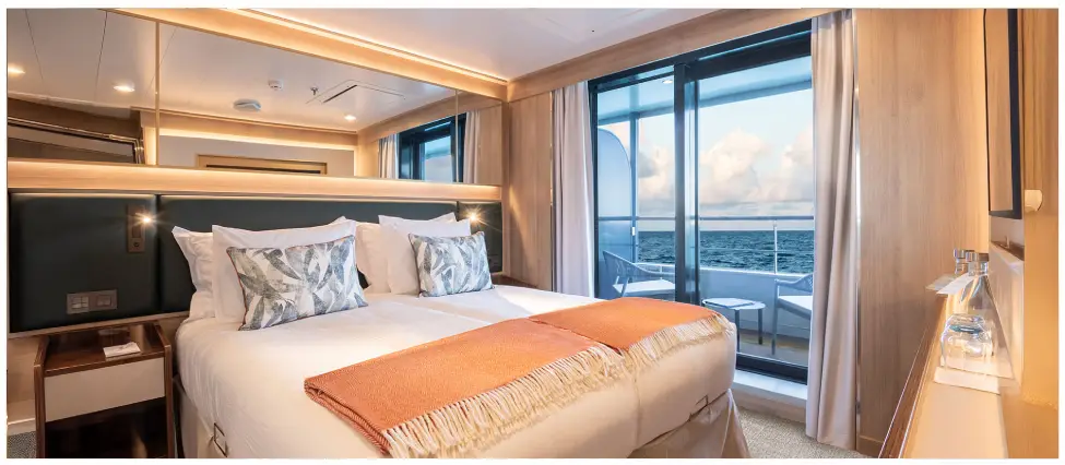 Breathe easy in our most spacious Navigator Suite. A generous balcony with entrances from the bedroom and living room gives way to incredible views. Enjoy the perfect balance of indulgent nights aboard after thrilling days ashore.