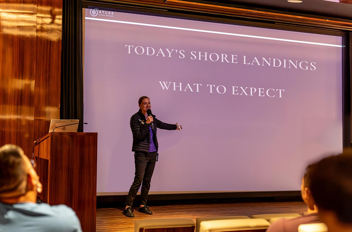 The stage is set for engaging lectures and demonstrations from guest chefs, cultural experts and storytellers. Become immersed in your destination with fascinating insights into local history and culture. On Polar Expeditions, your expedition guides will review the highlights of your adventures with daily briefings.